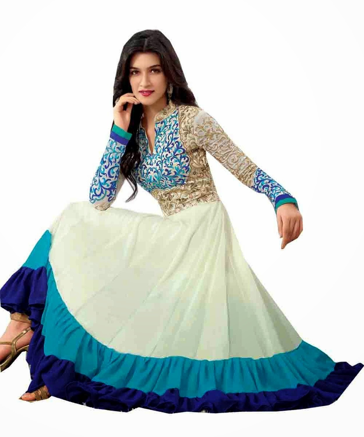 Clickedia Women Gorgette Semi-Stitched Anarkali Suit (SAUve 2122- White) price Rs1,495